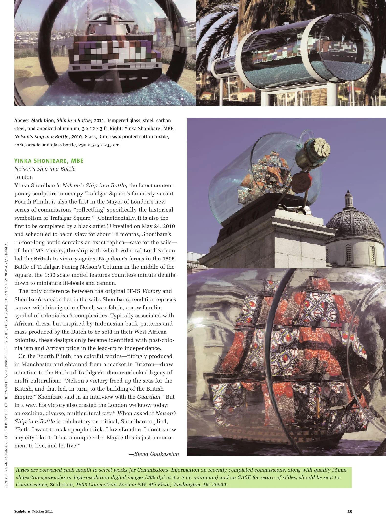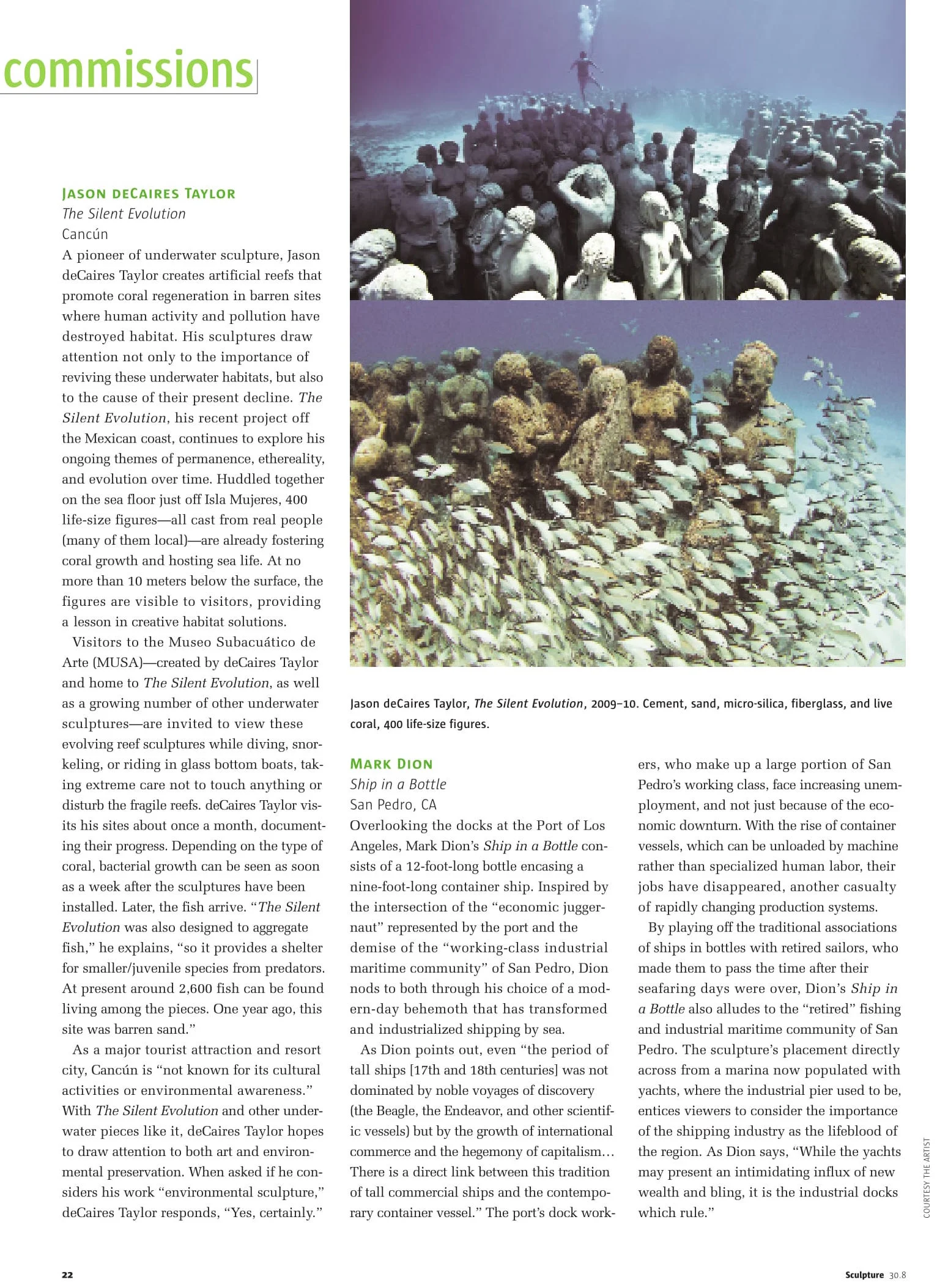 Commissions: Jason deCaires Taylor, Mark Dion, and Yinka Shonibare (Sculpture magazine)